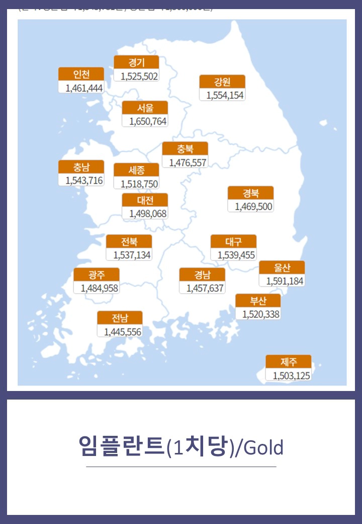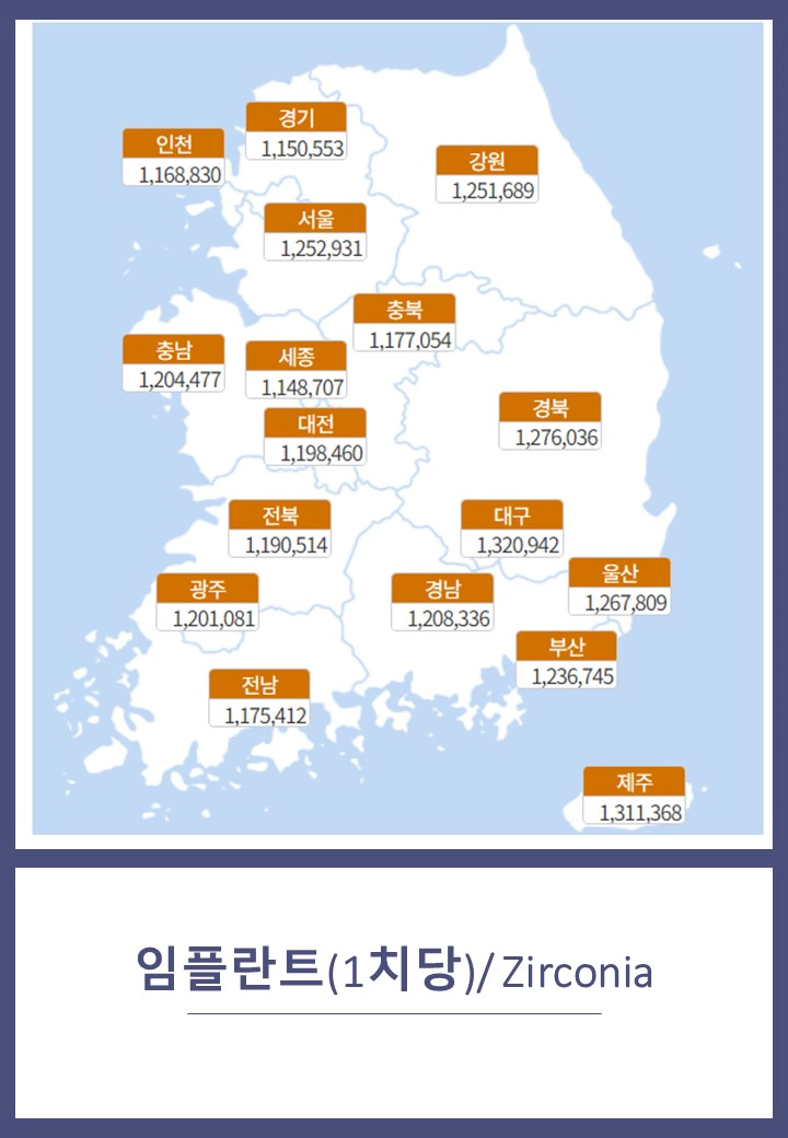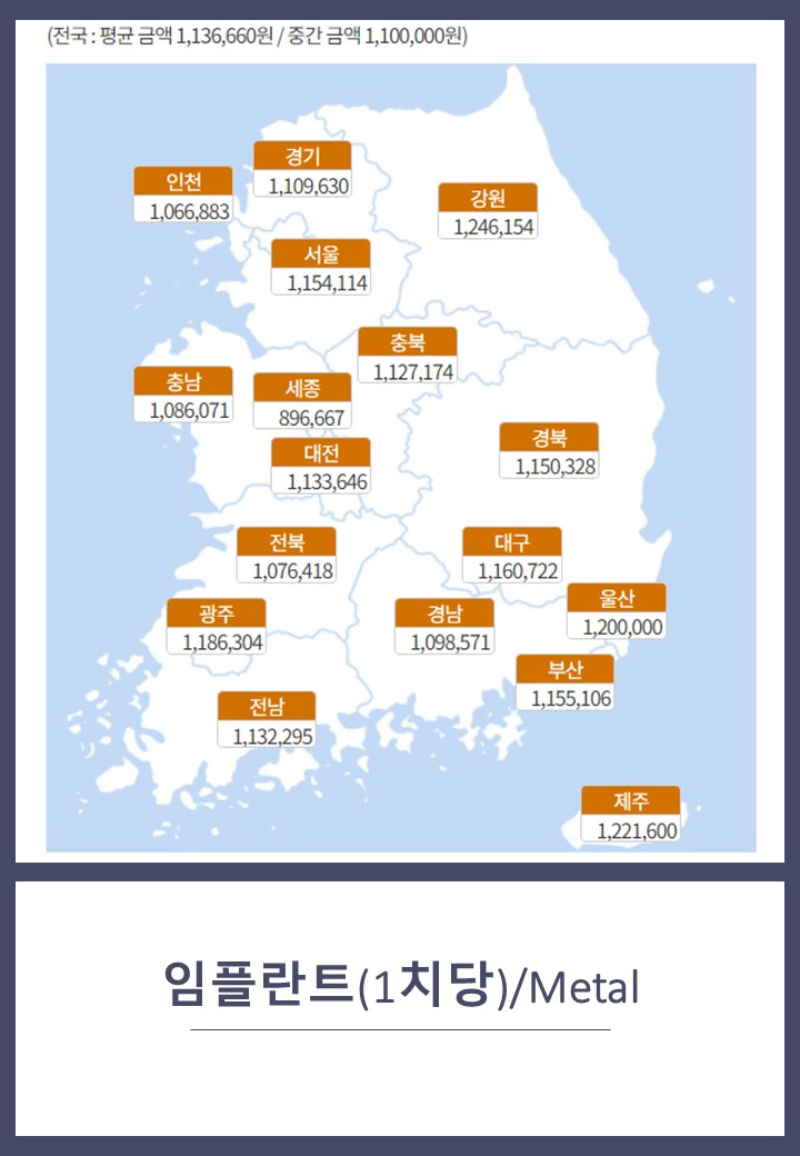 서울을 기준으로 임플란트 재질에 따라 평균 110만~190만 원 수준으로 형성되어 있다.