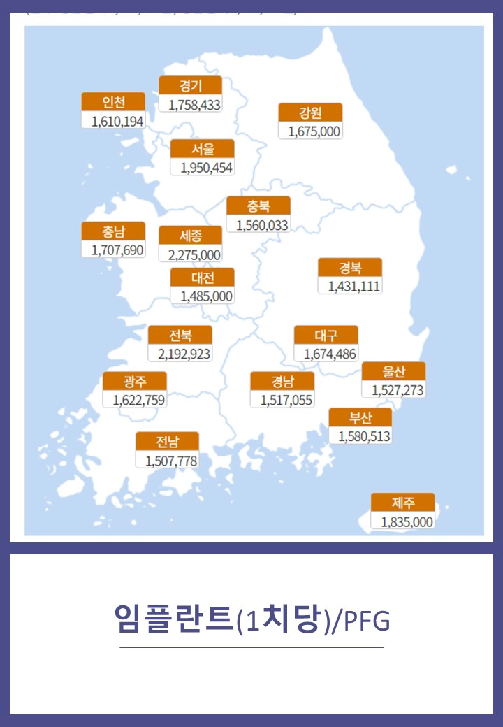 아래 이미지는 심평원 공식홈페이지에서 검색한 지역별 임플란트 평균가격이다.